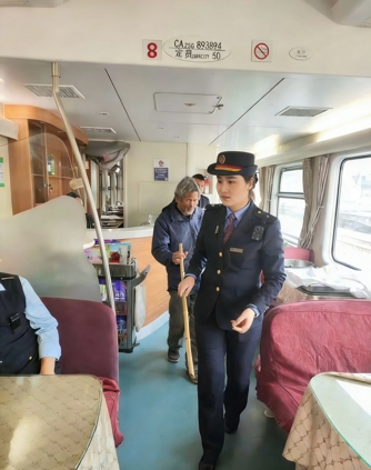 在2026年2月1日,一列由西安客运段广州车队广州五组值乘的K84次列车上,发生了一幕温馨的画面。软卧列车员黄珊在接到重点旅客工单后,迅速行动,为一位独自乘车的盲人伯伯提供了无微不至的帮助。她轻轻搀扶,温柔引导,确保伯伯安全抵达座位,并细心安置好行李,递上一杯热腾腾的水。旅途中,黄珊不时前来询问需求,从喝水到如厕,每一个细节都考虑周全。到站前夕,她更是提前守候,耐心告知,确保盲人乘客的旅途无忧。下车时,黄珊与车站工作人员无缝对接,确保伯伯平安离站。这份细心与爱心,如同冬日暖阳,照亮了盲人乘客的归家之路,也温暖了在场的每一个人。